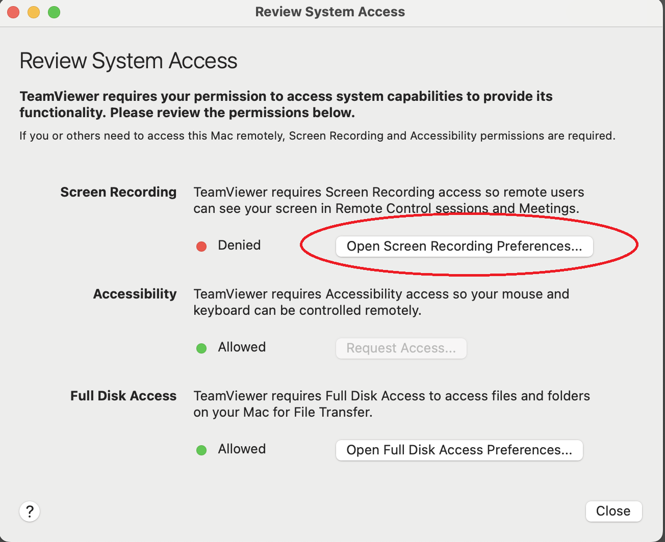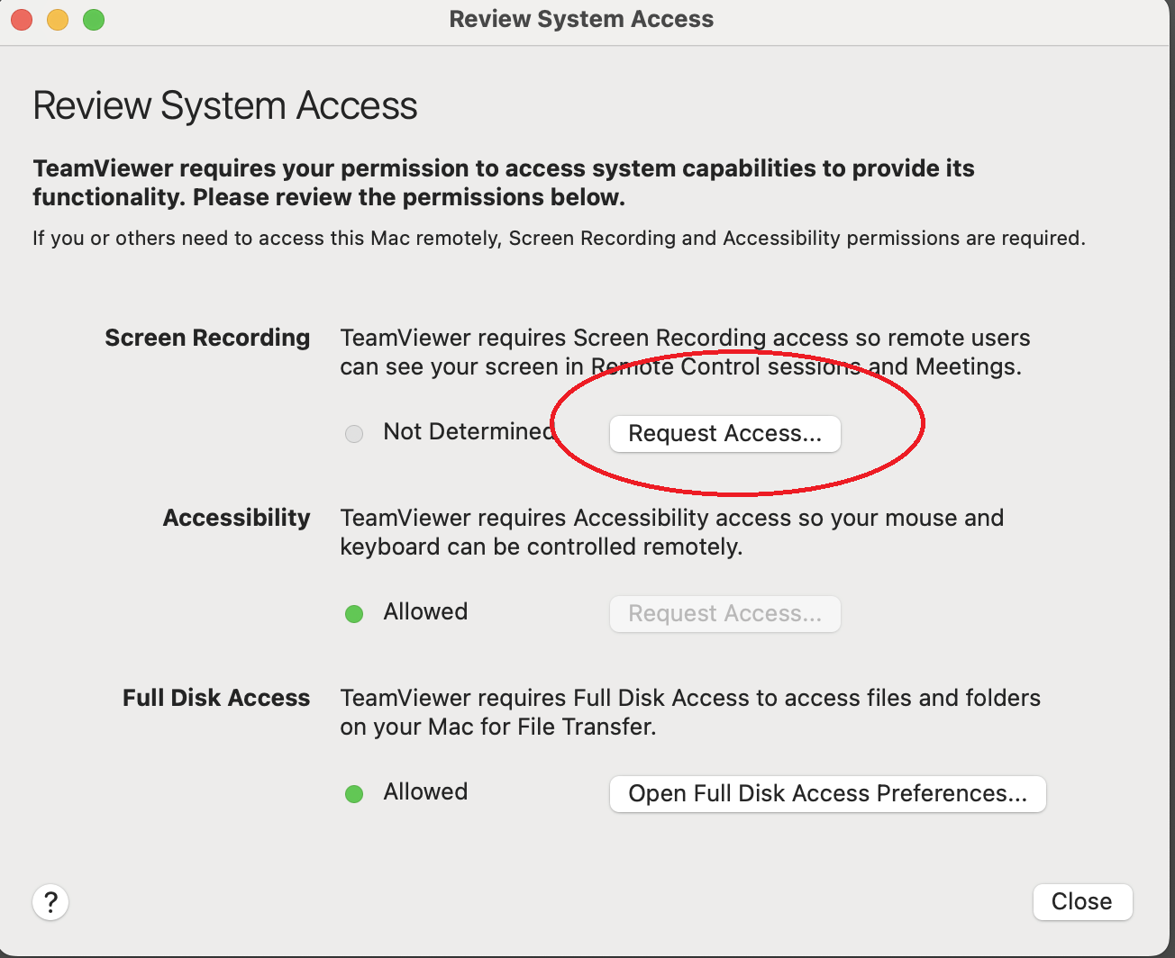 4. Etter at IT har koblet seg på må vi tillate skjermopptak. Om du har blitt fjernstyrt tidligere vil man ikke trenge å gjøre dette: