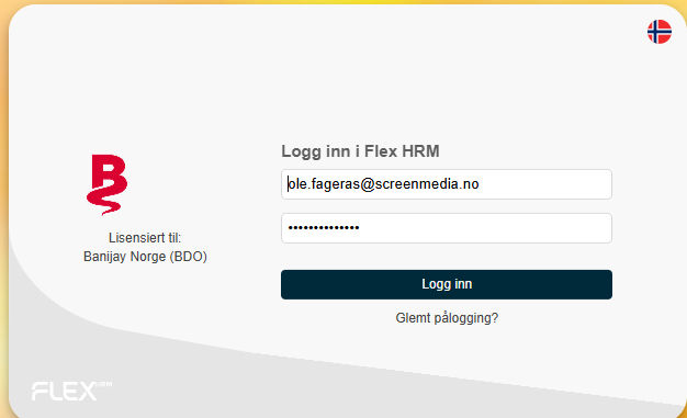 Nå kan du logge deg inn på den nye løsningen til Flex: https://web.flexhrm.com/