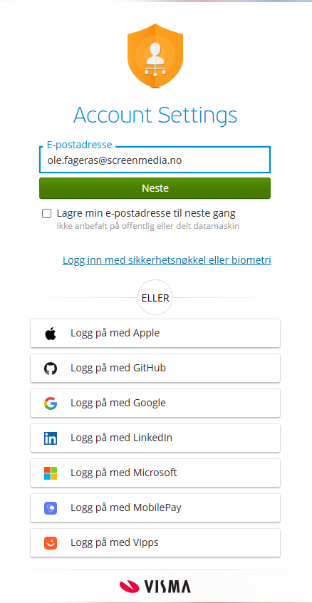 4. E-posten din er da verifisert. Nå må vi opprette et passord til den nye løsningen. Trykk på linken ved "Administrer kontoen din".