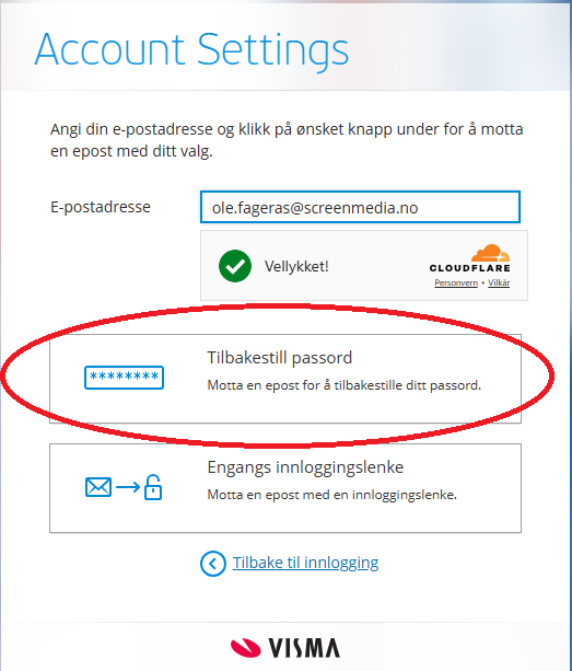 7. Huk av boksen under e-posten din og vent til den blir verifisert. Trykk så på "Tilbakestill passord". Følg linken du får tilsendt på e-post.