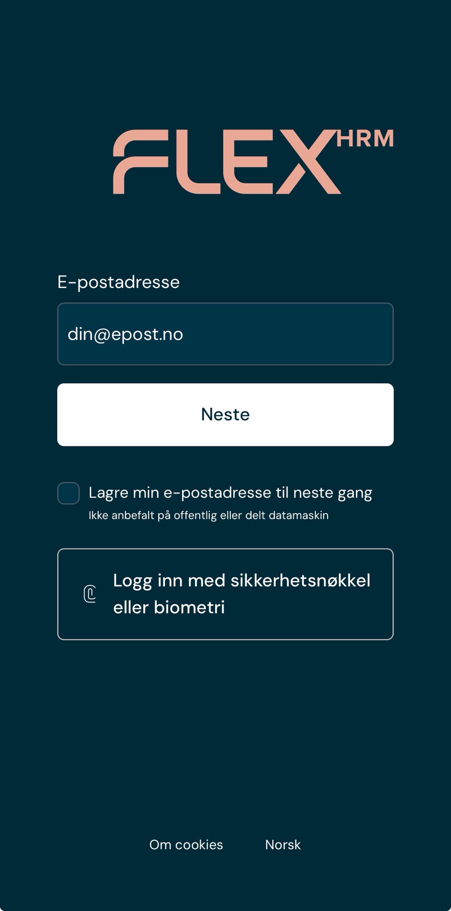 Legg så inn din e-post adresse og det passordet du laget etter verifisering mot Visma Connect. (Verifisering sendt ut pr. e-post.)